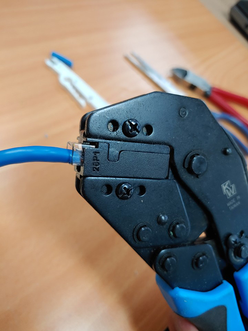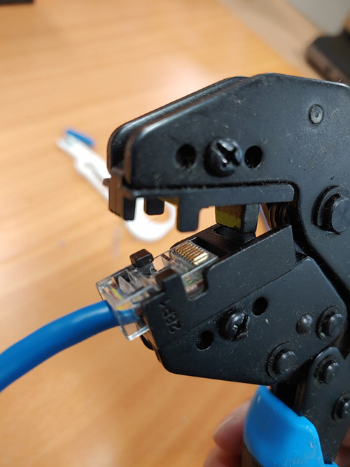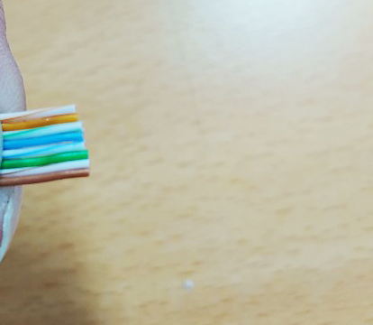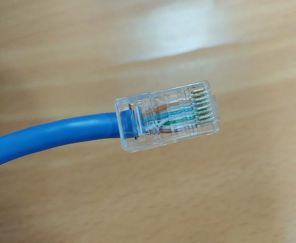 랜선의 끝 부분은 가지런히 하기 위해 가위로 잘라냅니다.