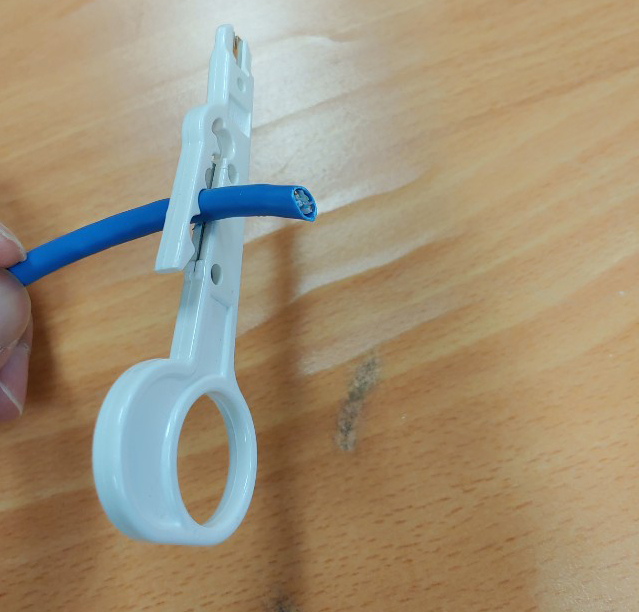 랜선 탈피기를 이용하여 원하는 위치에 놓고 손가락을 끼워서