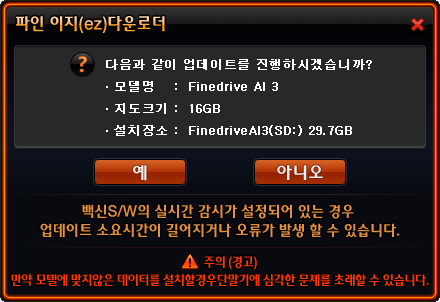 파인드라이브 홈페이지에 접속하여 제품 등록 후 파인 이지 다운로더를 다운받아 설치합니다.