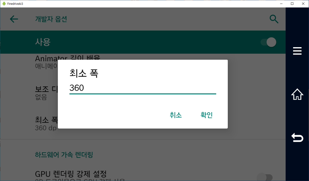 화면 크기 조정을 하면 일부 터치가 안되는 증상이 발생할 수 있으니