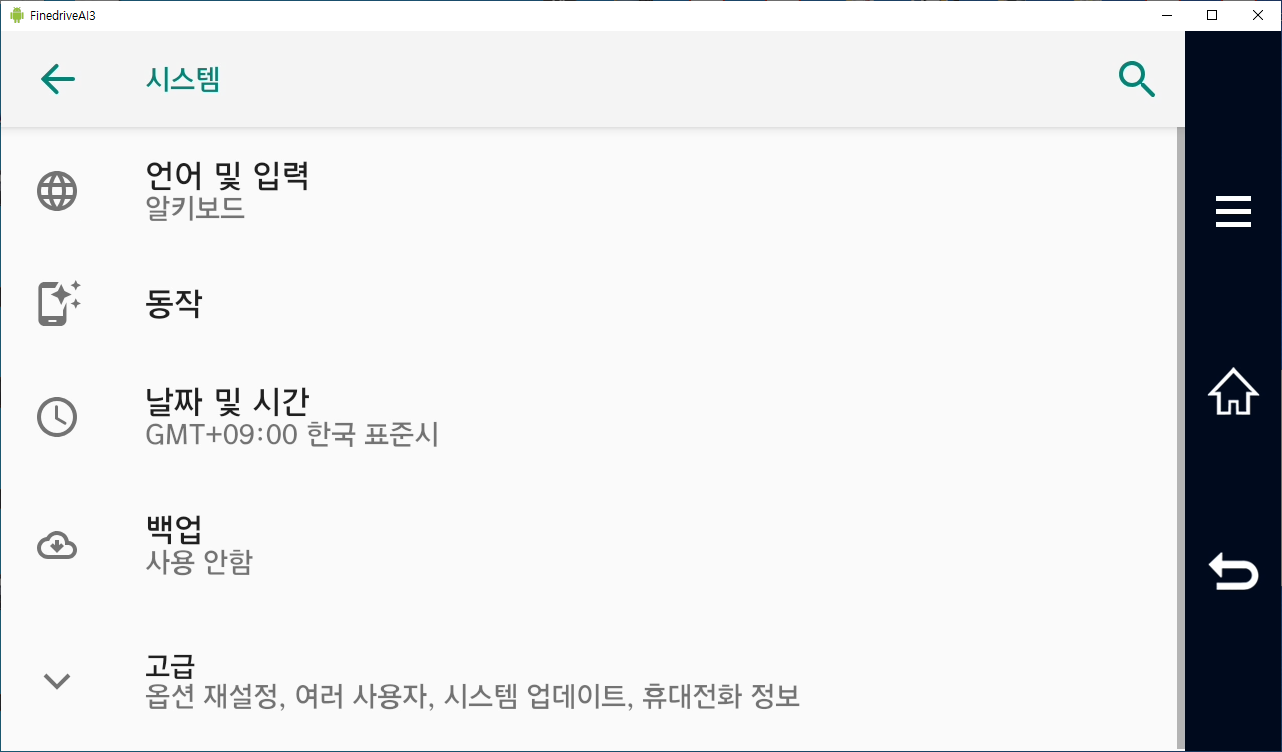 안드로이드 설정의 시스템 > 고급을 터치합니다.
