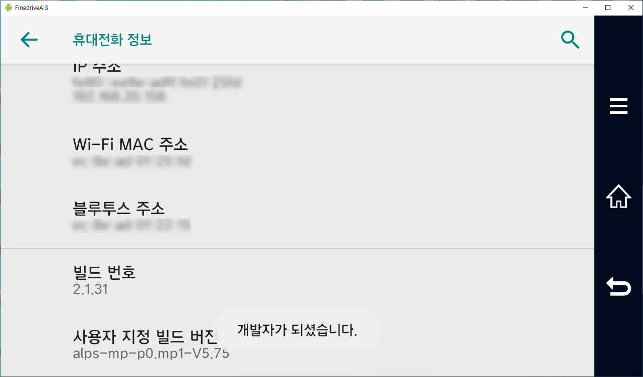 시스템에서 시스템정보 > 아래에서 두번째를 여러번 터치하면