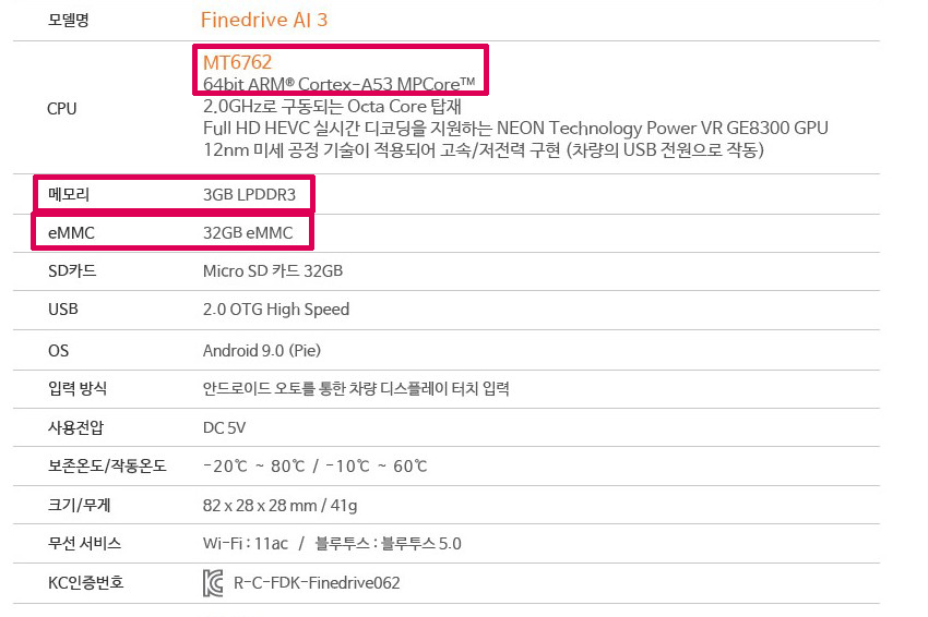 파인드라이브 AI3는 옥타코어 CPU 구조를 가지고 있습니다.