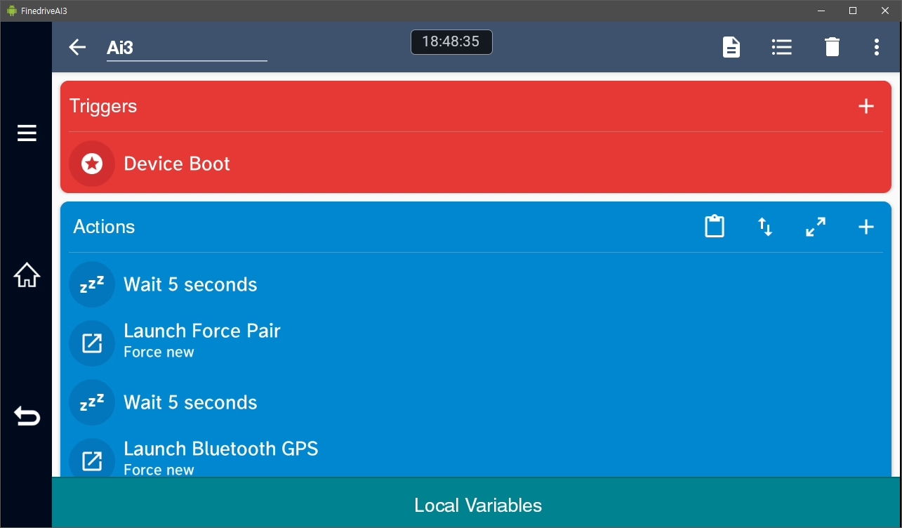Add Actions > Applications > Launch Application > Bluetooth GPS > Force new
