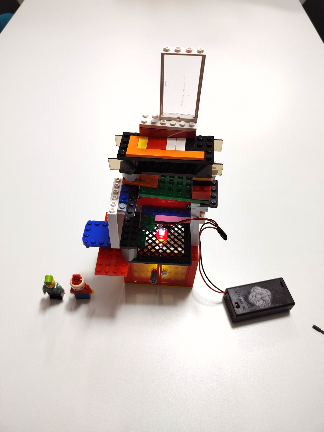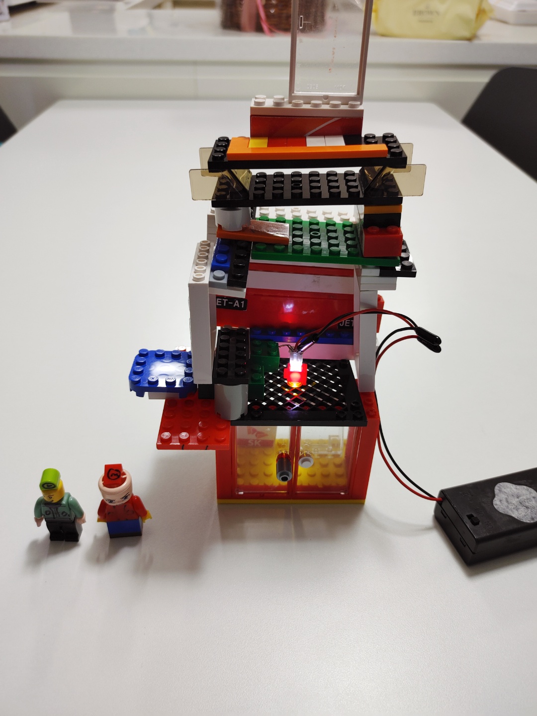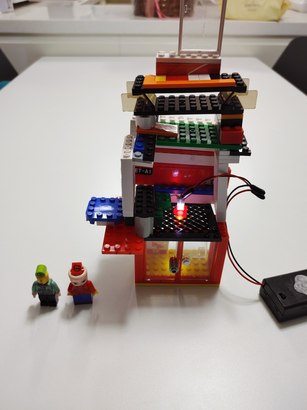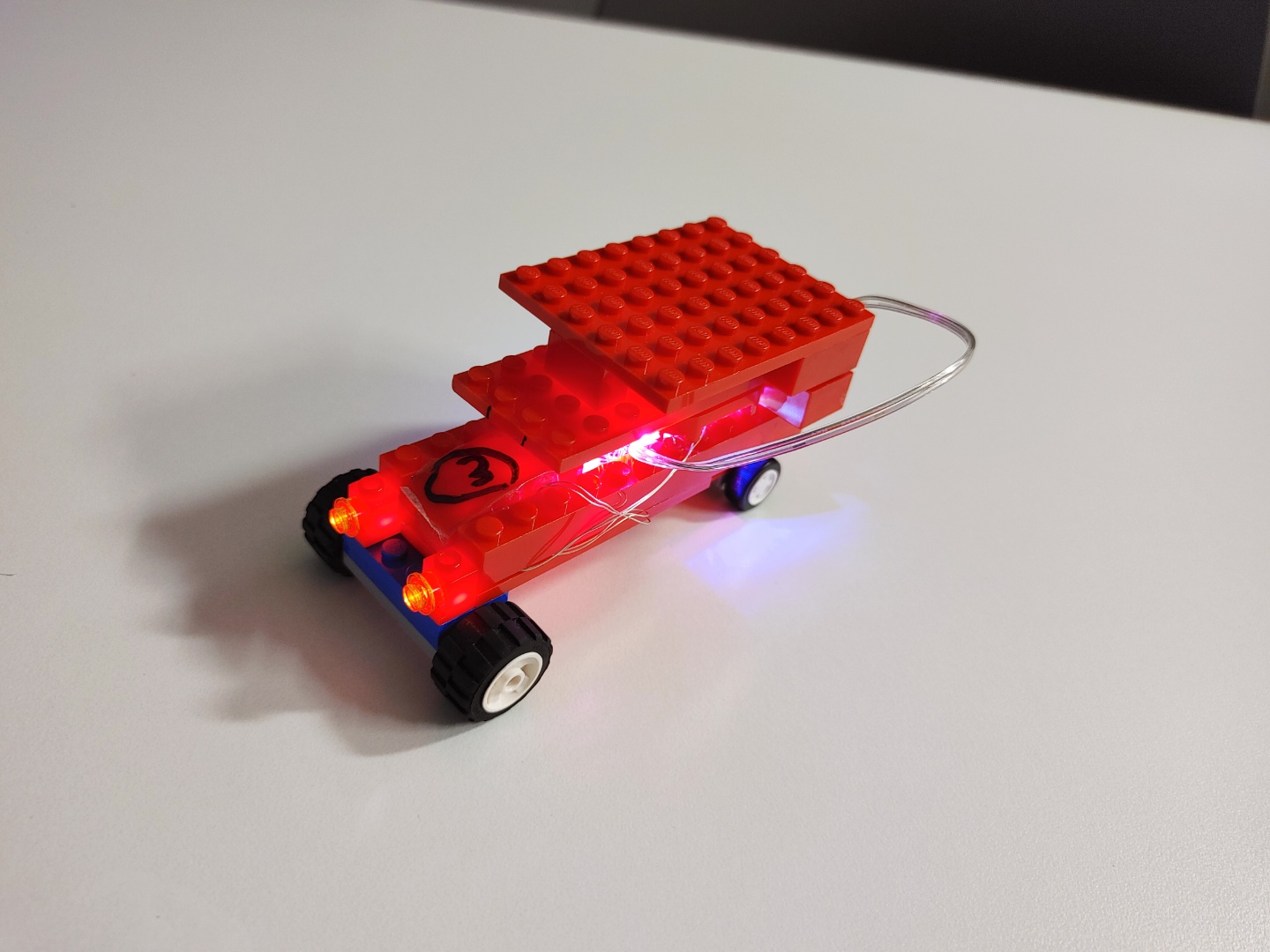 LED 전구를 사용한 블록 자동차와 건물을 만들었다.