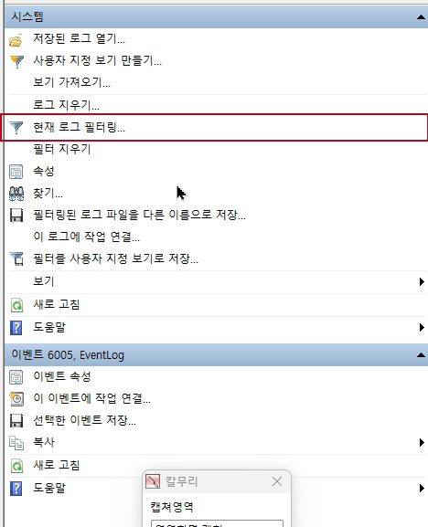 필터를 이용해서 검색하고자 한다면 우측의 "현재 로그 필터링"를 클릭한다.